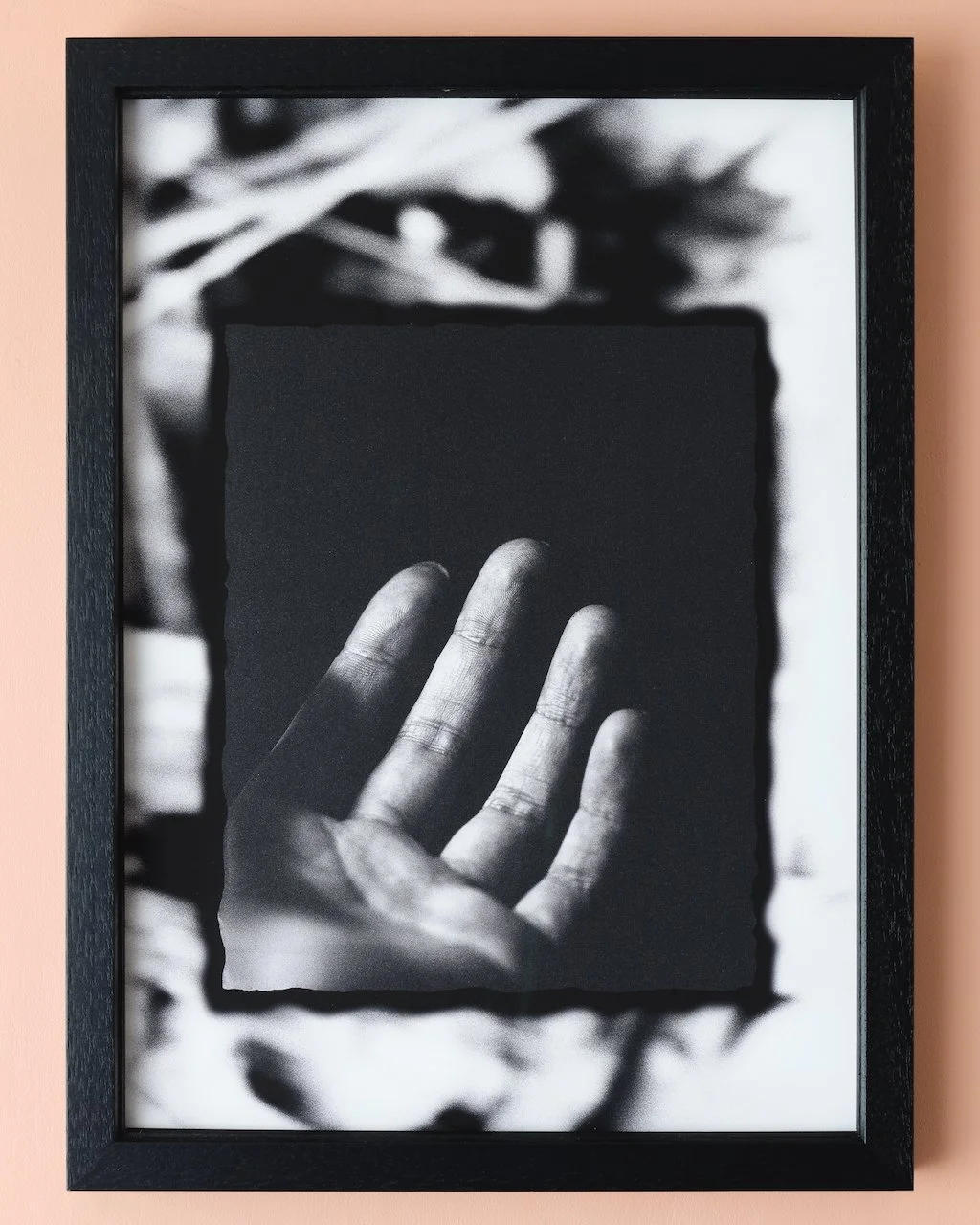Above: HAND, 2025, Kanich Khajohnsri, Inkjet on paper with custom black wood box frame with Artglass (Anti-reflective/UV protection), 45 × 32.5 cm