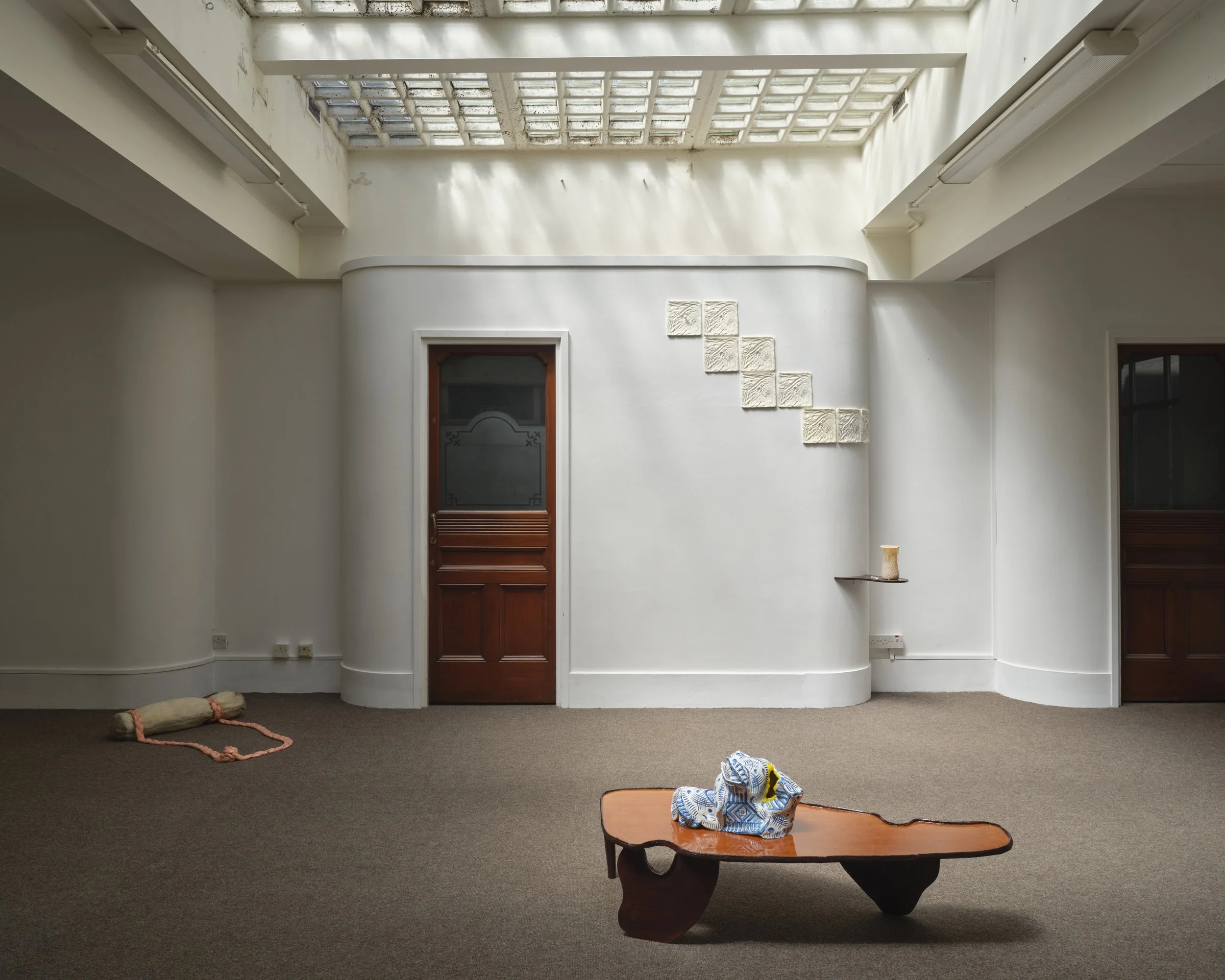 Their sculptural work engages with the materials and syntaxes of domestic life, crockery, delftware, grime, and waste, as evidence of living. They excavate and reconfigure these elements through ceramics, embroidery, bio-casts, and latex, connecting the subjective interior with shifting architectures of “home.”