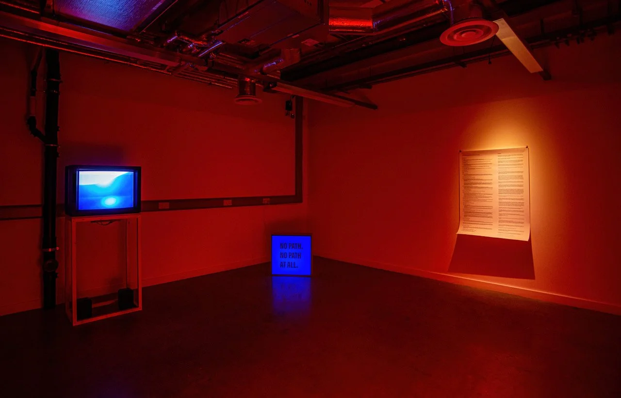 An installation of shot of Lost Not Lost, Susan Hughes, University of Ulster MFA Show, Belfast, Northern Ireland, 2021.